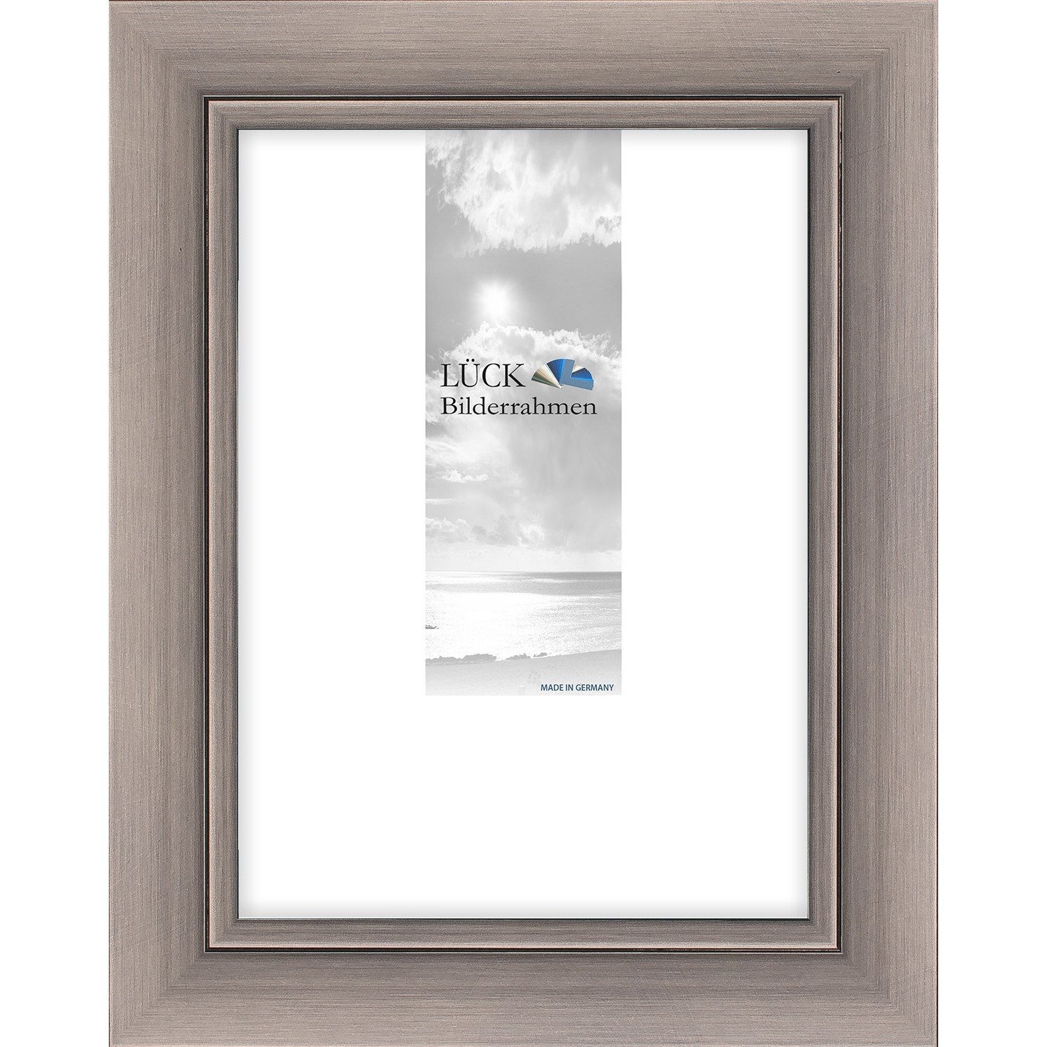 Ausstattung: Alle Rahmen enthalten eine MDF-Rückwand (sofern nicht als Leerrahmen bestellt) und die bei der Bestellung ausgewählte Glasart. Die Ausstattung mit Einzel- und ggf. auch Doppelpassepartout ist möglich. Als Standard-Passepartoutfarben werden dabei verwendet: Altweiss (6002) / Gold (33). Wenn Sie andere Passepartoutfarben oder -ausschnitte wünschen, bestellen Sie bitte ein Passepartout als Maßanfertigung separat dazu. Aufhänger & Aufsteller: Es sind Aufhänger für Hoch- und Querformat vorhanden. Bis zum Format 20×28 liefern wir unseren Drahtbügelaufsteller mit. Dieser wird einfach in die dafür vorgesehenen Bohrungen in der Rahmenleiste gesteckt. Der Rahmen steht damit stabil unabhängig von der Leistenbreite. Die Bohrungen für den Aufsteller sind im Hoch- und Querformat vorhanden.