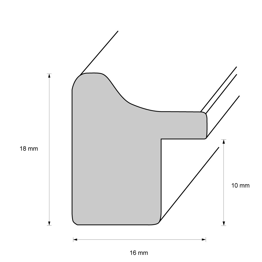 Die Rahmenleiste ist 1,6 cm breit.