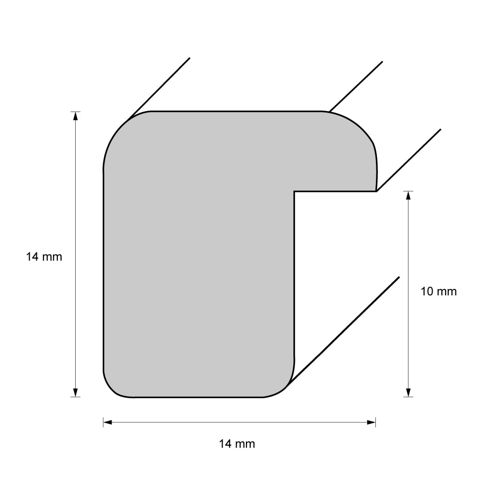 Die Rahmenleiste ist 1,4 cm breit.