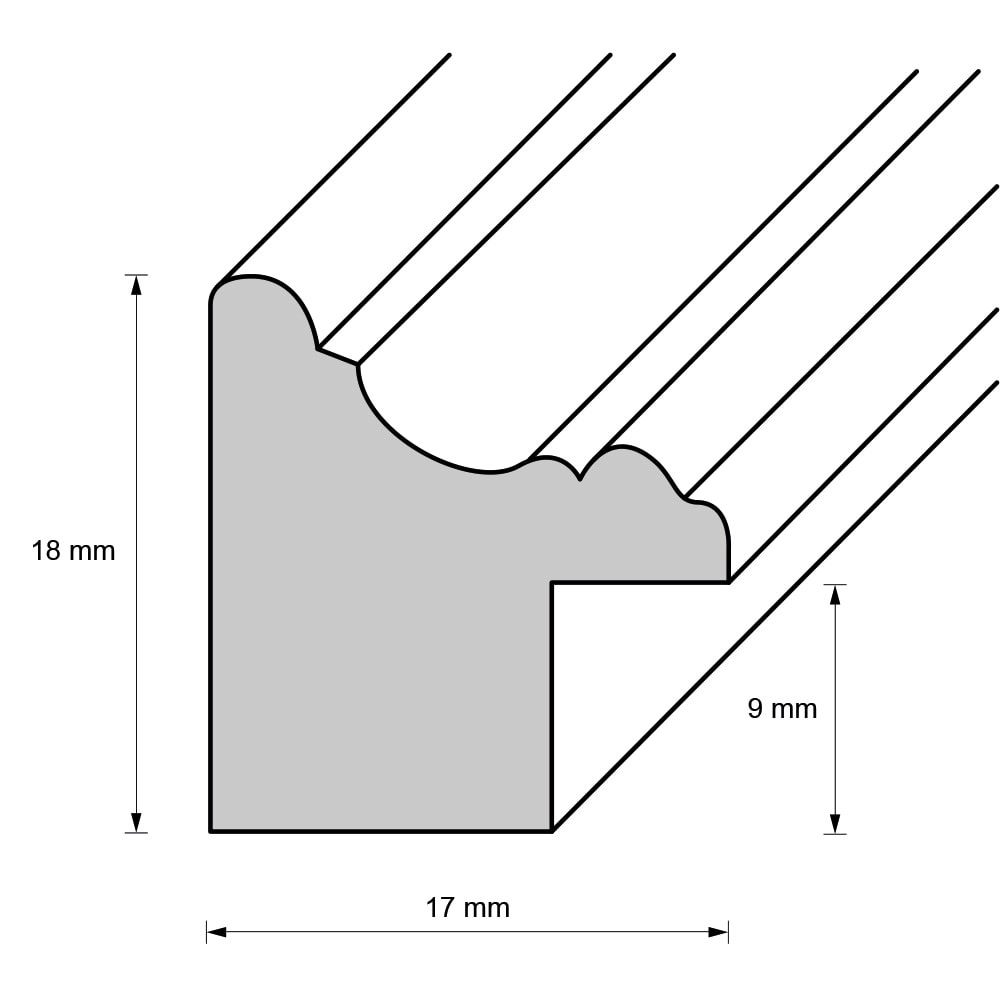 Die Rahmenleiste ist 1,7 cm breit.