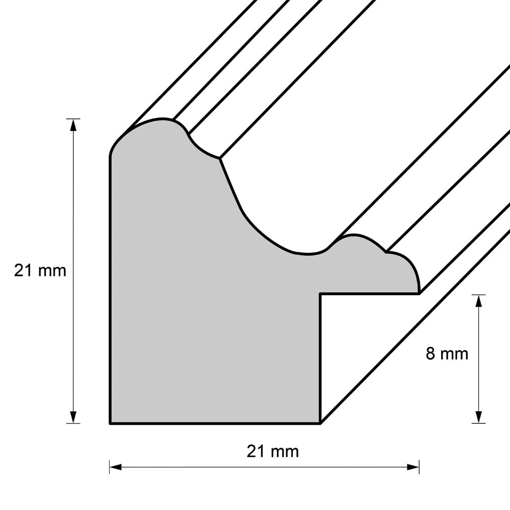 Die Rahmenleiste ist 2,1 cm breit.