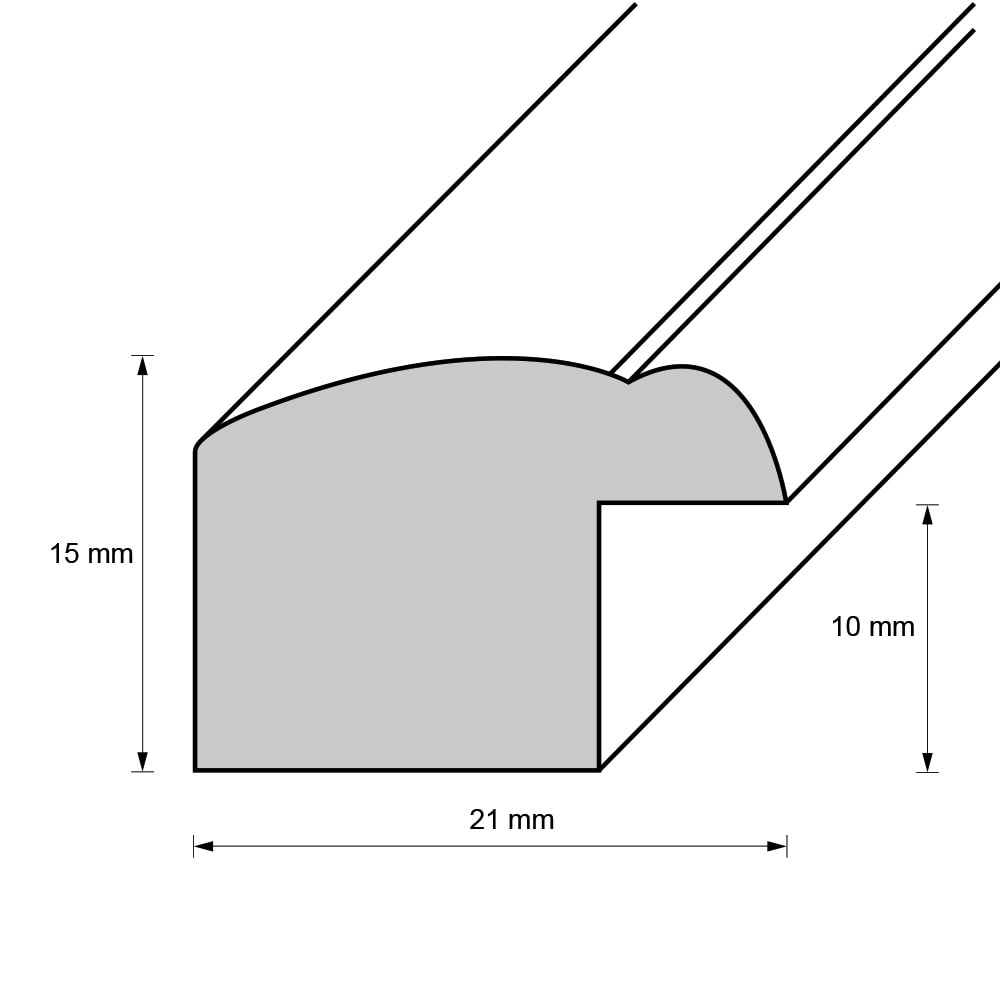 Die Rahmenleiste ist 2,1 cm breit.