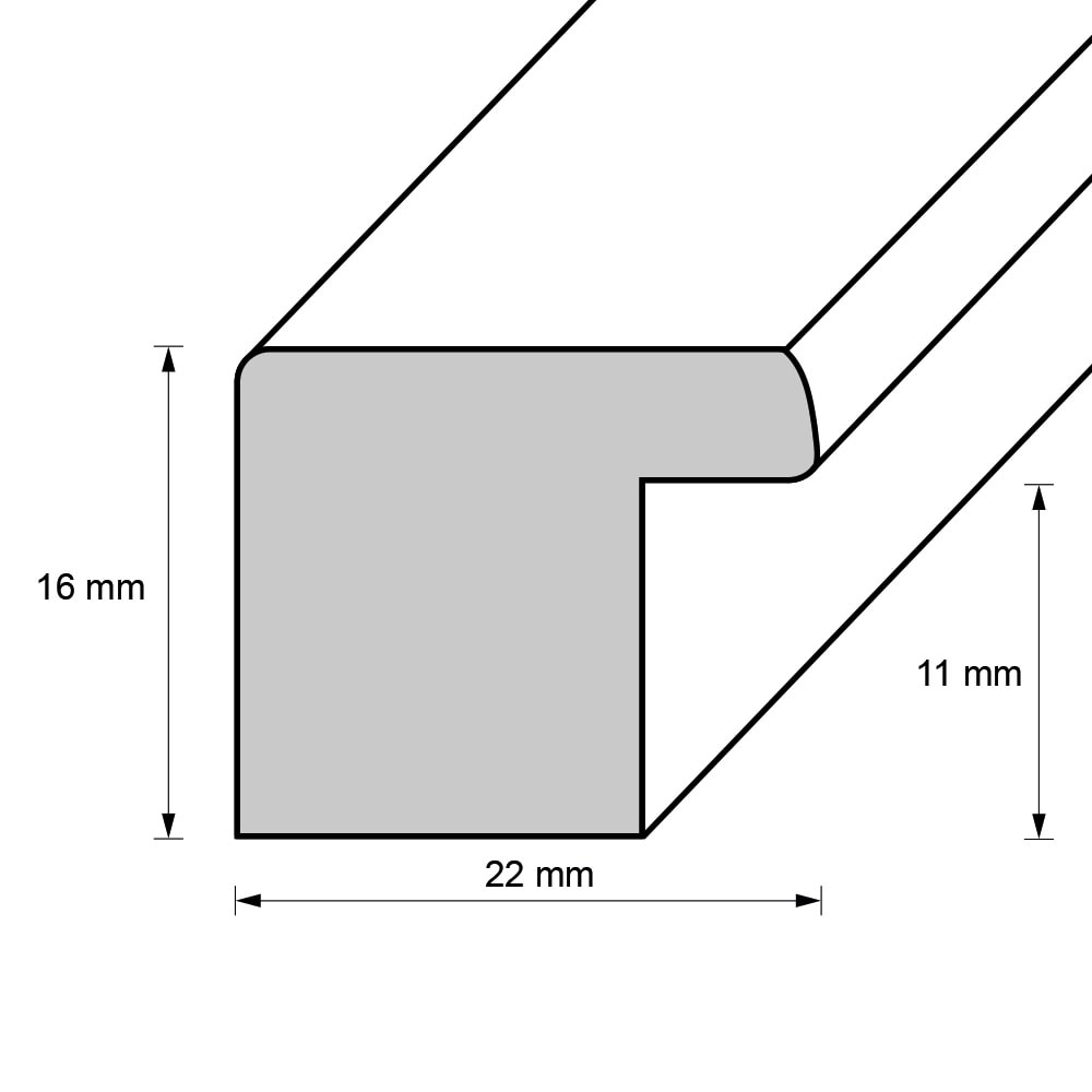 Die Rahmenleiste ist 2,2 cm breit.