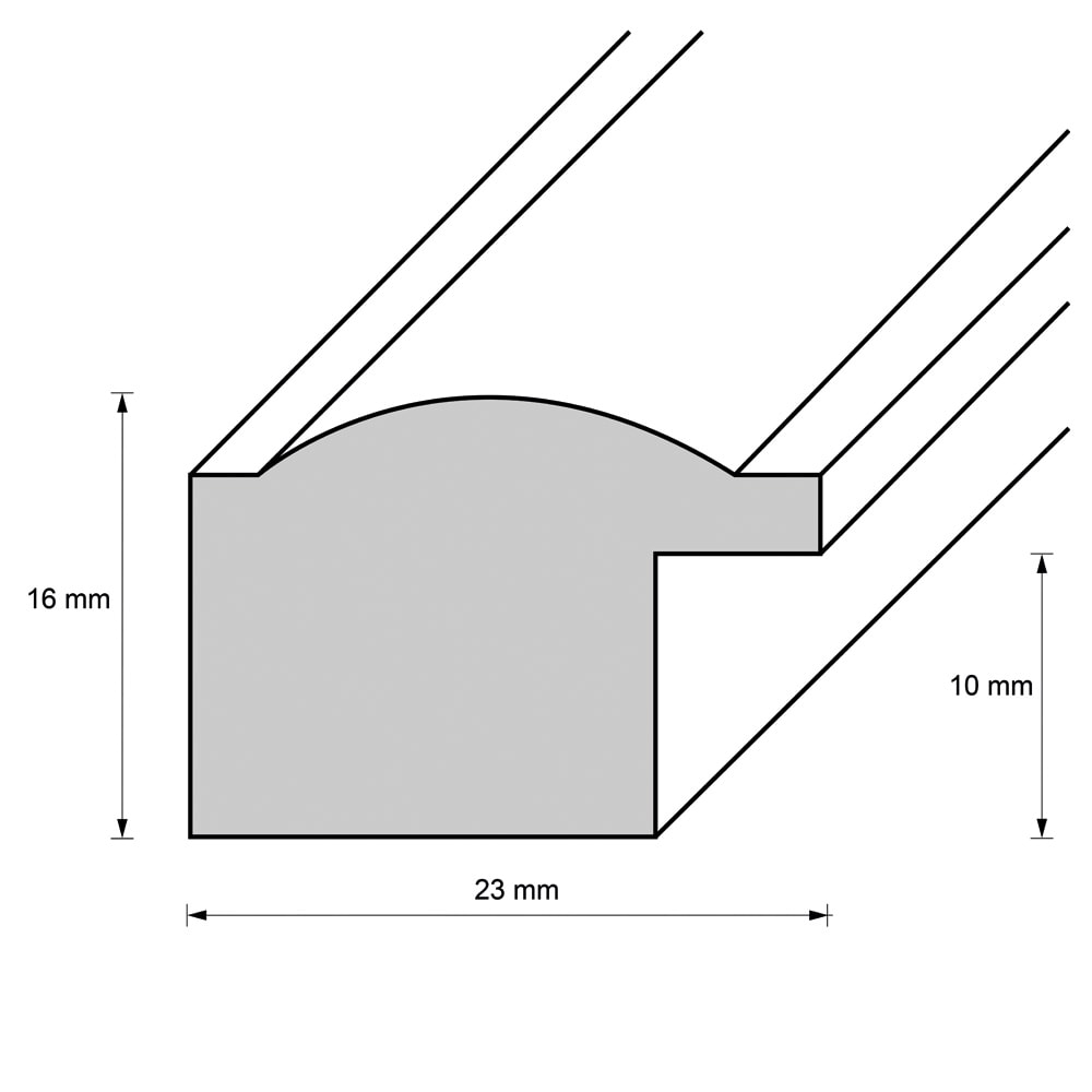 Die Rahmenleiste ist 2,3 cm breit.