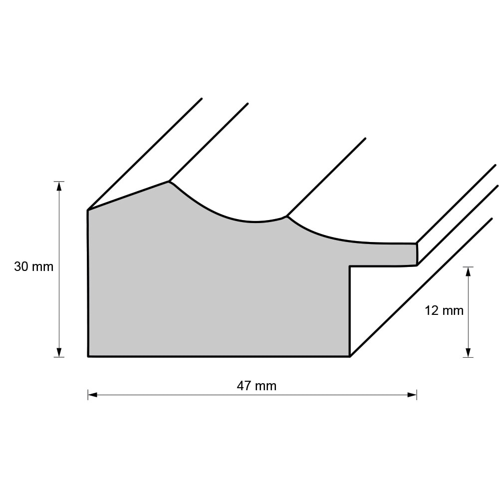 | Oberfläche | Kunststoffleiste in Holzoptik, foliert, mit Silberkante |